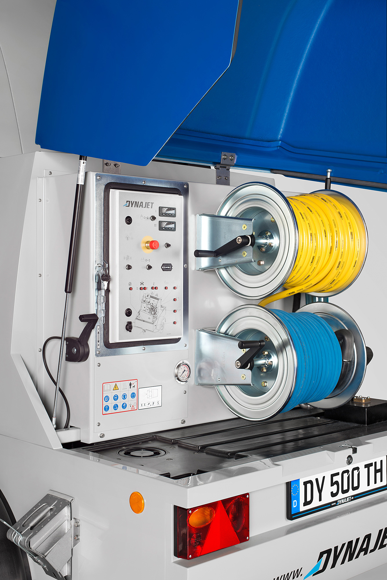25米的供液軟管和50米的高壓軟管安裝在彈性永久膠管滾筒上,可在幾秒內(nèi)開始工作 可清洗的不銹鋼水過濾器濾芯,有效地延長使用壽命